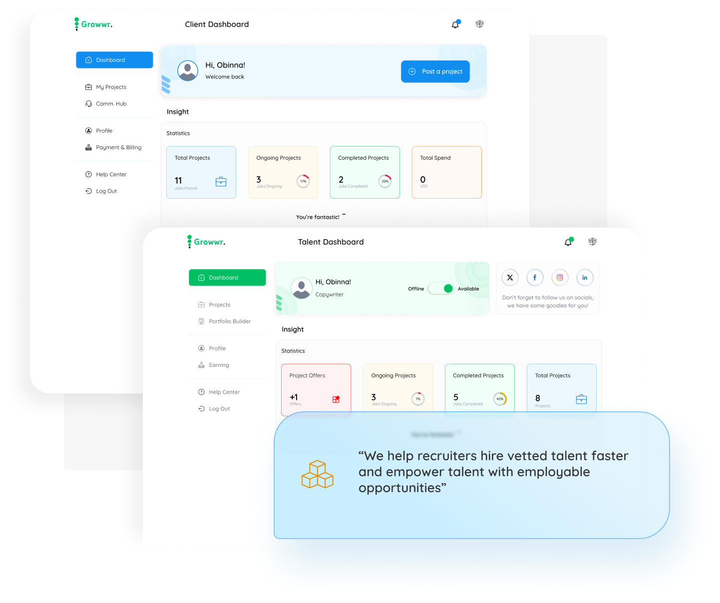 Genuine jobs, reliable clients. Say goodbye to fake jobs and time wasters. Growwr’s platform is designed to filter out ingenuine users.
